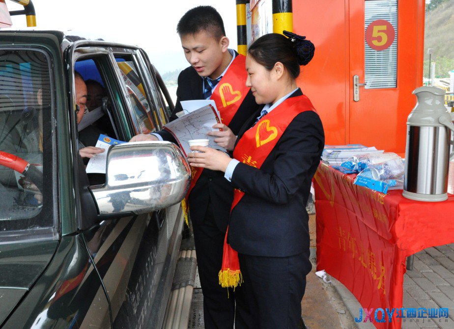 活動當(dāng)天,銅鼓所的志愿者們大清早就對收費崗?fù)みM(jìn)行了一次大清掃,為司乘提供舒適的出行環(huán)境。并在崗?fù)ご罱ㄆ?ldquo;青年志愿者服務(wù)臺”,主動為司乘人員提供熱水、應(yīng)急藥品、維修工具等便民服務(wù),向司乘人員進(jìn)行收費政策、安全宣傳,以及交通引導(dǎo),同時,通過24小時服務(wù)熱線:0795-8681616,隨時為需要幫助的司乘人員提供送油、送水、輪胎打氣、車輛電瓶充電、幫助聯(lián)系修理廠或汽修配件等流動式服務(wù)。