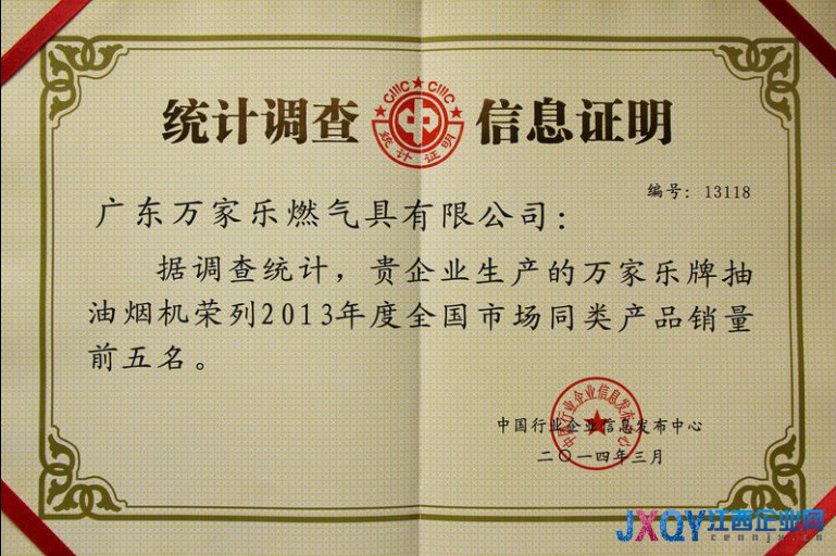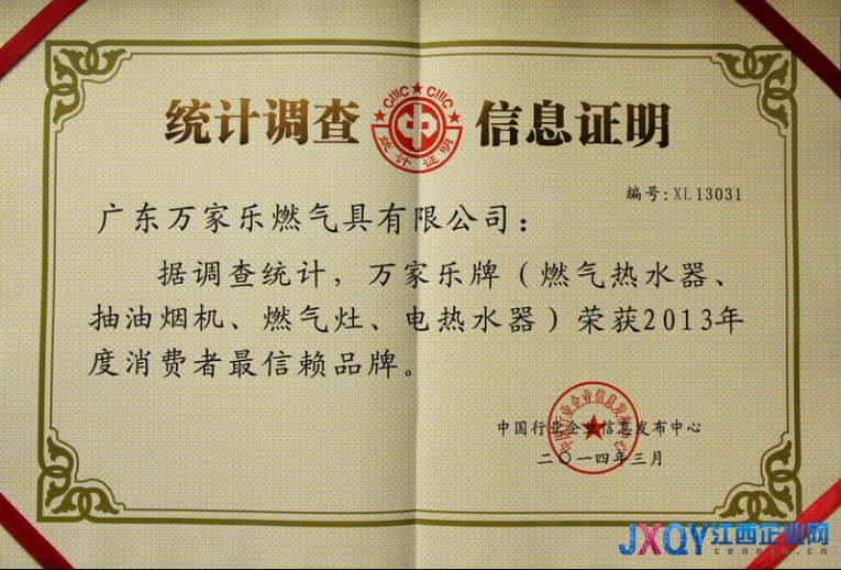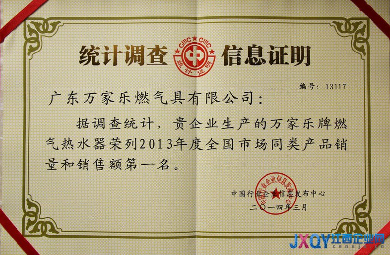 江西企業(yè)網(wǎng)訊 2014年3月,由國(guó)家統(tǒng)計(jì)局中國(guó)行業(yè)企業(yè)信息發(fā)布中心舉辦的“第18屆全國(guó)市場(chǎng)銷量領(lǐng)先品牌信息發(fā)布會(huì)”于北京人民大會(huì)堂隆重舉行。會(huì)上統(tǒng)計(jì)監(jiān)測(cè)結(jié)果顯示:萬(wàn)家樂燃?xì)鉄崴鳂s列2013年度全國(guó)市場(chǎng)同類產(chǎn)品銷量和銷售額第一名,并榮獲2013年度消費(fèi)者最信賴品牌稱號(hào),這也是萬(wàn)家樂連續(xù)第24年占據(jù)燃熱市場(chǎng)銷售龍頭的位置。同時(shí),萬(wàn)家樂電熱水器、燃?xì)庠?、抽油煙機(jī)都進(jìn)入2013年度同類產(chǎn)品全國(guó)市場(chǎng)銷量前五名。