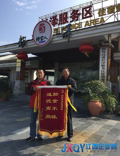 11月14日,贛粵高速彭澤服務區(qū)在“噼里啪啦…”爆竹聲中,再次迎來一位蘇州大學游客送來“拾金不昧 道德高尚”錦旗。11月11日蘇州大學王先生來廬山旅游不僅領略了的秀麗風景的獨特魅力,在服務區(qū)就餐時,更被彭澤服務區(qū)員工的淳樸、善良所感動。通過96122交通服務熱線得知游客價值上萬元單反相機遺落之后,幫忙多方聯(lián)系最終將相機送還,當服務區(qū)占主任將單反相機交到失主手中,失主接過失而復得的單反相機顯得意外而又驚喜,執(zhí)意要給占主任香煙表示感謝,他說什么也不肯收;失主又提出請吃飯,也被他婉言謝絕了。
