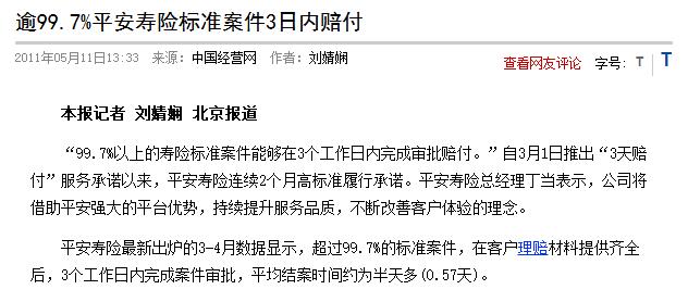 2011年,推出“標(biāo)準(zhǔn)案件、資料齊全、三日賠付”承諾