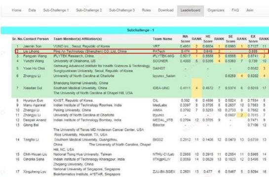 江西企業(yè)網(wǎng)訊 近日,在國(guó)際醫(yī)學(xué)影像頂級(jí)會(huì)議ISBI舉辦的IDRiD眼底圖分析競(jìng)賽中,中國(guó)平安集團(tuán)旗下平安科技的平安穎像平臺(tái)表現(xiàn)優(yōu)異,斬獲硬性滲出物(EX)分割任務(wù)世界第一,出血(HE)分割任務(wù)世界第二,以及微動(dòng)脈瘤(MA)分割任務(wù)世界第三的好成績(jī)。這是繼平安穎像平臺(tái)在國(guó)際醫(yī)學(xué)影像領(lǐng)域權(quán)威評(píng)測(cè)LUNA排行榜獲得世界第一后,再次獲得世界級(jí)大獎(jiǎng)。