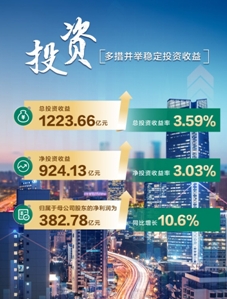 努力穩(wěn)定整體收益水平。該公司將資產負債管理理念貫穿經營管理各環(huán)節(jié),積極兼顧長期價值和短期效益,持續(xù)加強成本管控和承保管理。2024年上半年,中國人壽實現(xiàn)凈投資收益924.13億元,較2023年同口徑同比增加18.28億元;凈投資收益率為3.03%。實現(xiàn)總投資收益1223.66億元,較2023年同口徑同比增加309.94億元;總投資收益率為3.59%,較2023年同口徑同比上升26個基點。實現(xiàn)歸屬于母公司股東的凈利潤為382.78億元,同比增長10.6%。