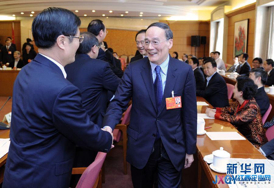 3月4日,中共中央政治局常委、中央紀(jì)委書記王岐山看望出席全國(guó)政協(xié)十二屆一次會(huì)議的農(nóng)工黨、九三學(xué)社界委員并參加聯(lián)組會(huì)。 新華社記者 張鐸攝