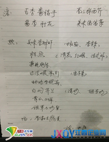 方某:手寫(xiě)的菜單是我吃飯之前才給我的。