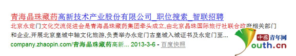 晶珠藏藥在智聯(lián)招聘上的廣告