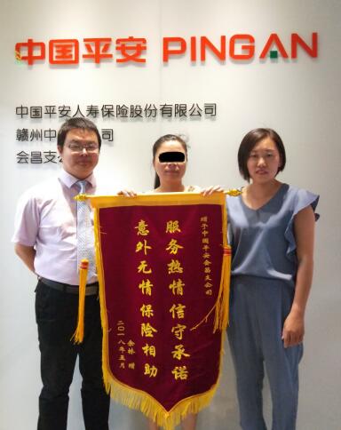 江西企業(yè)網(wǎng)訊 近期,贛州市會昌縣客戶家屬劉女士將一面“服務(wù)熱情信守承諾,意外無情保險相助”的鮮紅錦旗送到平安人壽江西分公司以感謝公司專業(yè)的暖心賠付。