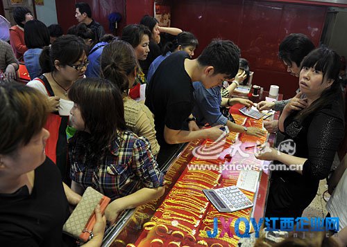 4月17日,南昌市一家金店里,擠滿了前來購(gòu)買金飾的顧客。記者王祺攝