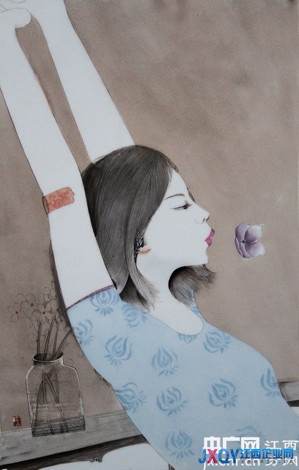 周涼涼2011年來到景德鎮(zhèn),她的工作室名為“瓷眸”,正是她的藝術(shù)風格的體現(xiàn)。慵懶的午后,安靜的女子,閑適淡雅,這些是她的畫中最常出現(xiàn)的意象。