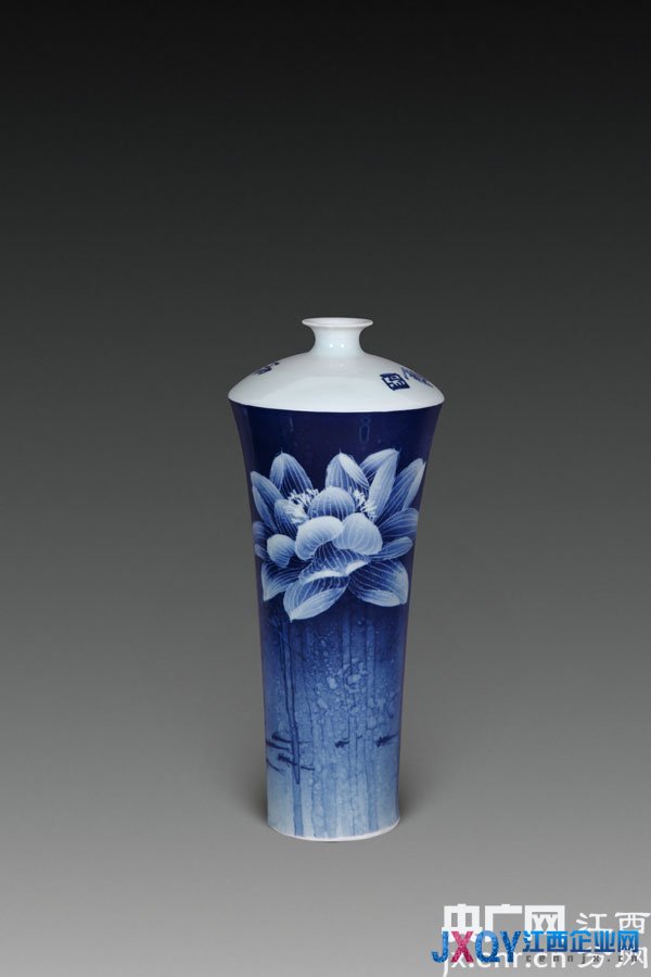 青花在他的筆下,再不是平面上的靜物,而是以其飽滿的姿態(tài),站立在陶瓷上。