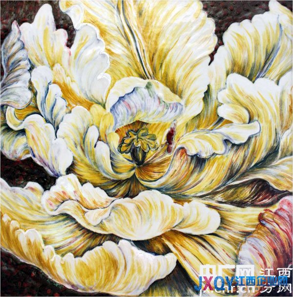 蘇姍對“向日葵”題材的創(chuàng)作情有獨鐘。作為蘇姍的授業(yè)恩師,中國工藝美術(shù)大師李文躍教授認為蘇姍的“向日葵”作品既脫去了傳統(tǒng)各式陶瓷繪畫的羈絆,又不同于前人與他人那般運用陶瓷材料,將中國傳統(tǒng)繪畫的筆意與西方現(xiàn)代繪畫的構(gòu)成觀念巧妙融合,營造出充盈著重形式上的唯美與媒介的現(xiàn)代生活親近感,表現(xiàn)出作者平靜心態(tài)上的精神向往。她的作品滲入了更多的感性追求與表現(xiàn),作品在平和中透著睿智,為欣賞者營造出一幅幅溫馨而又雋永的藝術(shù)世界,從而給予觀者以耳目一新之感。