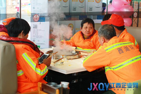 江西企業(yè)網(wǎng)訊(楊歡)繼小編跟蹤報(bào)道公益事件第三篇,江西蘇寧2月14日在恒茂夢時(shí)代廣場華神龍火鍋店舉辦了一場別開生面的公益啟動(dòng)儀式。一并邀請了新浪江西、江西蘇寧及媒體新聞朋友。14日當(dāng)天小編也受邀共同參與這個(gè)公益活動(dòng)中,一起與愿意奉獻(xiàn)愛心的社會(huì)人士共同關(guān)注環(huán)衛(wèi)工人。與此同時(shí),新浪江西連續(xù)3天發(fā)起微博話題討論,關(guān)注蘇寧“#1個(gè)行動(dòng)1個(gè)愛心#關(guān)愛環(huán)衛(wèi)工人行動(dòng),宣布啟動(dòng)2015年針對環(huán)衛(wèi)工人的無償服務(wù)計(jì)劃,江西蘇寧承諾在全省30家門店免費(fèi)為環(huán)衛(wèi)工人提供熱飯、開心、休息以及免費(fèi)清洗油煙機(jī)、空調(diào)等服務(wù)。