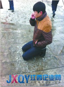下午2時(shí)20分,男孩接到了女孩的電話,女孩電話中的聲音很大,但聽不到說(shuō)了什么。在男孩通電話時(shí),記者大聲告訴對(duì)方,男孩下跪不起,已經(jīng)凍得發(fā)抖后,女孩不知道說(shuō)了什么,男孩立馬站起來(lái)了,并說(shuō):“我已經(jīng)站起來(lái)了。”“求求你,原諒我,我知道我錯(cuò)了,我以前任性,原諒我吧。”男孩接電話時(shí),不斷哭泣并反復(fù)說(shuō)著上述內(nèi)容。通話幾分鐘后,男孩邊說(shuō)話邊離開。