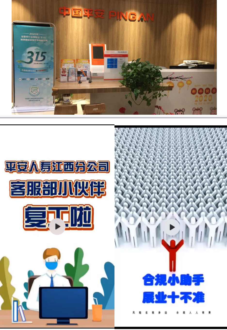 結(jié)合當(dāng)前疫情防控工作要求,平安人壽江西分公司充分利用微信公眾號、短視頻等資源,開展多渠道,多角度的線上教育宣傳工作,同時,為加強(qiáng)宣傳力度,分公司各中支機(jī)構(gòu)客服中心、營業(yè)網(wǎng)點(diǎn)已統(tǒng)一張貼布置主題宣傳海報、易拉寶等物料,并在自有電子屏及廣告機(jī)上播放電子海報及標(biāo)語。后續(xù),平安人壽江西分公司將結(jié)合當(dāng)下疫情防控?zé)狳c(diǎn),經(jīng)典案例,針對不同領(lǐng)域、不同人群開展針對性的保險消費(fèi)風(fēng)險提示,不斷提升消費(fèi)者風(fēng)險防控意識和自我保護(hù)能力。