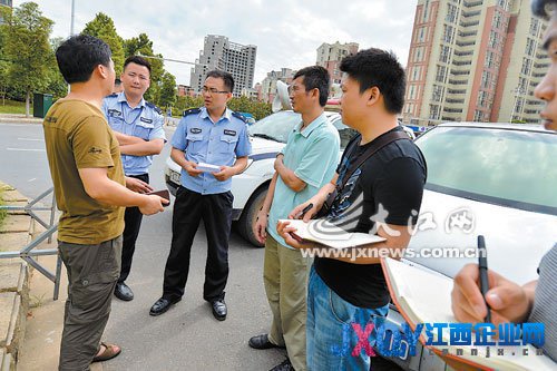 報警后,南昌市公安局紅谷灘分局紅角洲派出所民警及記者隨同梁振堂來到事發(fā)地點“聯(lián)泰金中環(huán)”售樓處了解情況。該售樓處工作人員把摔壞的相機(jī)及閃光燈、鏡頭交給了民警,但相機(jī)里兩張儲存卡不知去向。當(dāng)民警詢問兩名年輕男子的身份,聯(lián)泰公司出面協(xié)調(diào)的三名工作人員稱不認(rèn)識。事發(fā)時站在車上叫號的聯(lián)泰保安也向警方表示不認(rèn)識同在一車的兩名男子,稱黑色轎車是熱心的購房者提供的。