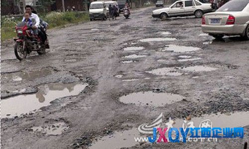 本報(bào)新余訊記者何琪攝影報(bào)道:據(jù)分宜市民反映,分宜縣鳳陽(yáng)鄉(xiāng)至洋江鎮(zhèn)的308公路已破爛不堪,10多公里都是坑坑洼洼,經(jīng)過(guò)車(chē)輛無(wú)不一路搖晃顛簸,這種現(xiàn)象已有3年了,一直這樣沒(méi)人管。從分宜打的去洋江鎮(zhèn),出租車(chē)司機(jī)都不肯去,因?yàn)槁诽珷€了,大小車(chē)經(jīng)過(guò)司機(jī)都怨聲載道。