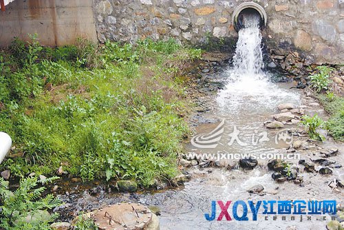 4月8日,記者趕赴九江市廬山區(qū),來到濂溪大道和前進(jìn)東路交匯處的濂溪河段,分別沿著濂溪大橋至長江化工有限公司(即5727廠)上游及該大橋至馮村下游河段,一路行走一路察看,發(fā)現(xiàn)上游的河水清澈見底,三三兩兩的居民在河中洗衣服,有幾個調(diào)皮的孩童赤著腳站在河邊潑水嬉戲。然而記者轉(zhuǎn)向濂溪橋至馮村下游段察看時,河水則變成了乳白色,看不到有人在河里洗滌。在大橋下石塊砌成的河岸坡邊,有一處直徑達(dá)五六十厘米的排污口,正嘩啦啦地流出淡淡的乳白色污水,直接流向河水中。在現(xiàn)場記者還注意到,離岸坡排污管口四五米處的河底,確實有一個蓋有鐵質(zhì)窨井蓋的排污口。