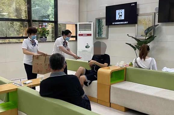 圖:鄭州分公司豐產(chǎn)路柜面工作人員為群眾提供食品