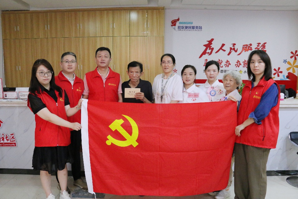 6月29日上午,江西分公司第一黨支部聯合南昌市第一醫(yī)院志愿服務小組、南昌章金媛愛心奉獻團走進南昌市東湖區(qū)小金臺社區(qū),共同開展“七一慰問老黨員、義診服務送健康”主題黨日活動。