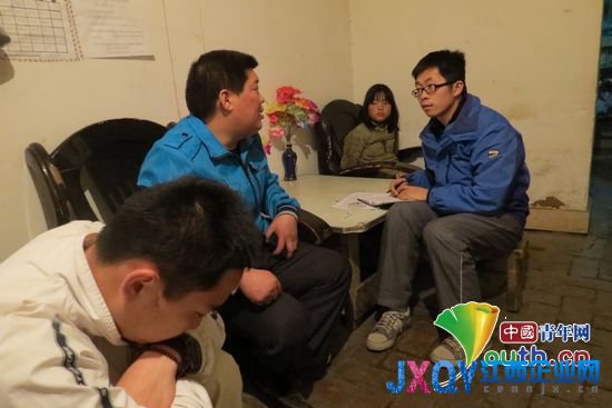 圖為志愿者李延兵走訪(fǎng)貧困學(xué)生家庭