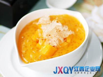 比如經(jīng)典的港式甜點楊枝甘露:把小香芒剝?nèi)ネ馄?,剔果核,一半分量的果肉切?cm見方的小粒。把沒有切粒的芒果果肉放入攪拌機,加入椰漿,白砂糖攪打均勻成芒果椰漿。煮熟西米,把煮好的西米,芒果粒,蜜柚果肉和少量淡奶油加入做好的芒果椰漿中拌勻冷藏30分鐘。