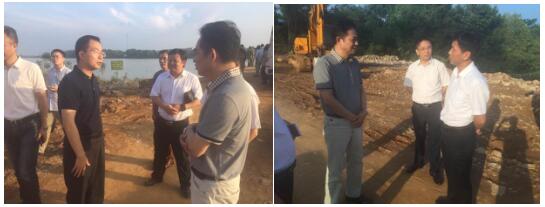 江西國壽副總經(jīng)理金香國在事故現(xiàn)場(chǎng)分別與泰和縣政府縣長鄧永翔(左圖左二)和常務(wù)副縣長匡曉衛(wèi)(右圖右一)介紹公司理賠服務(wù)舉措