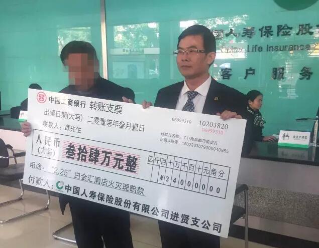 3月1日,工作小組迅速前往進賢客戶章某家中聯(lián)系其家屬,因前期調(diào)查及時,省、市、縣三級機構(gòu)聯(lián)動,僅1小時即完成所有的理賠程序,給付了保險金34萬元。當章某年邁的父母接過中國人壽主動找上門的賠款時連聲道謝:“我們根本都不知道還有這個保障!”
