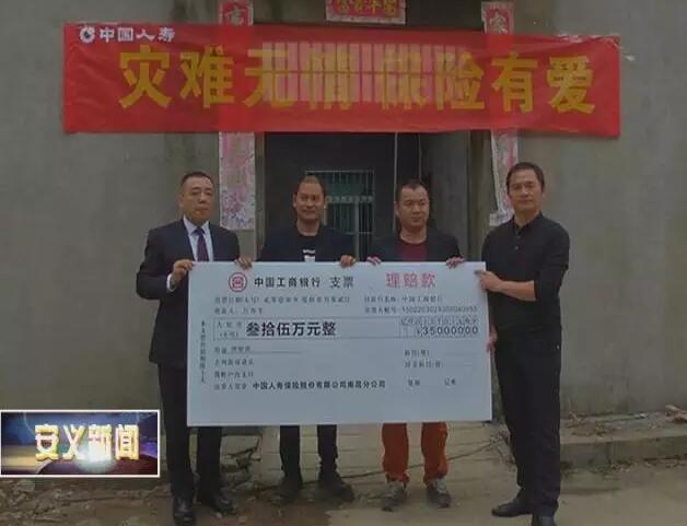 11月6號下午,中國人壽安義支公司工作人員來到因意外身亡的客戶萬齊生家,向客戶家屬送上35萬理賠款。