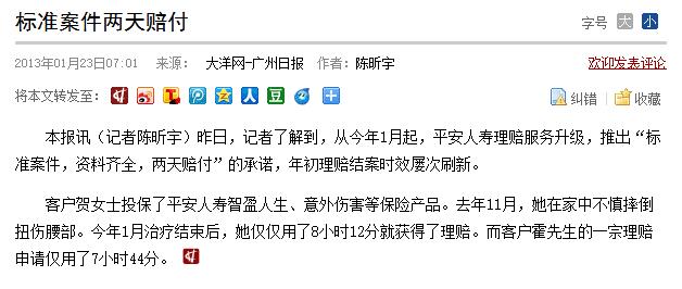 2013年,推出“標(biāo)準(zhǔn)案件,資料齊全,兩天理賠”服務(wù)