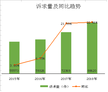 2018年,全市共受理消費(fèi)者投訴27235件,占全部訴求總量的30.73%,同比增長16.67%。