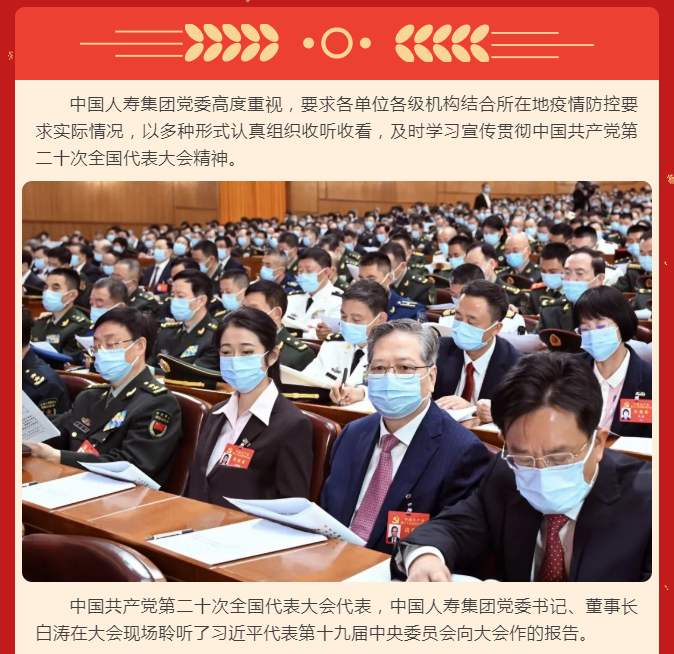 中國人壽廣大干部員工認(rèn)真收聽收看中國共產(chǎn)黨第二十次全國代表大會開幕會直播