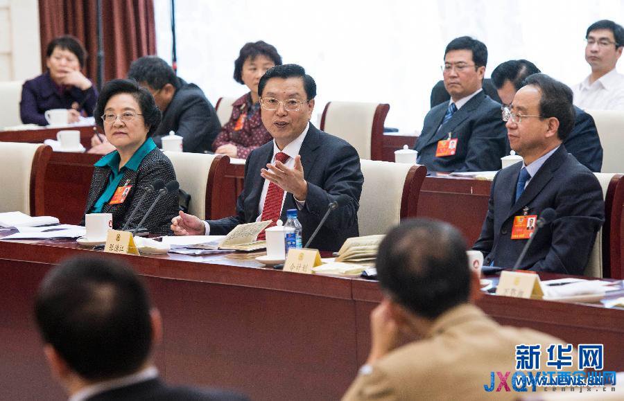 3月4日,中共中央政治局常委、國(guó)務(wù)院副總理張德江看望出席全國(guó)政協(xié)十二屆一次會(huì)議的民革、臺(tái)盟、臺(tái)聯(lián)界委員并參加聯(lián)組會(huì)。 新華社記者 王曄攝