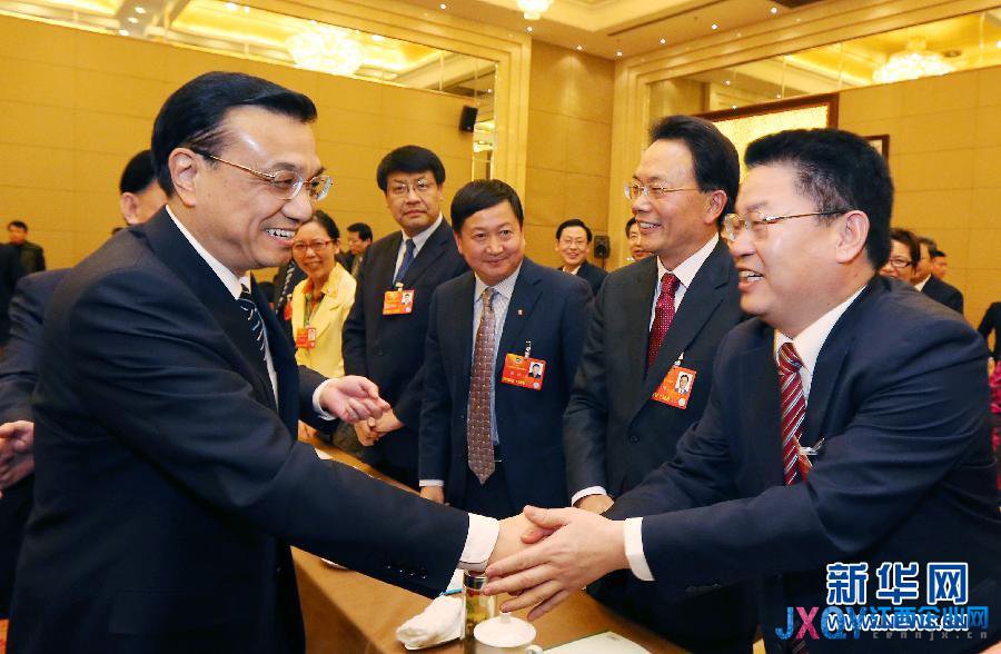3月4日,中共中央政治局常委、國(guó)務(wù)院副總理李克強(qiáng)看望出席全國(guó)政協(xié)十二屆一次會(huì)議的經(jīng)濟(jì)、農(nóng)業(yè)界委員并參加聯(lián)組會(huì)。 新華社記者 姚大偉 攝