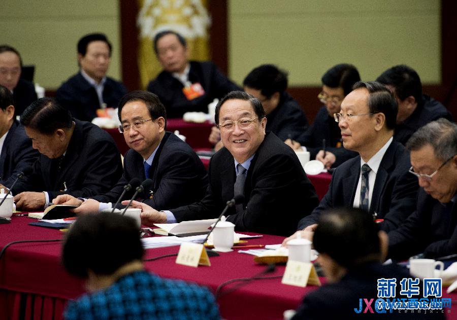3月4日,中共中央政治局常委、全國(guó)政協(xié)十二屆一次會(huì)議主席團(tuán)會(huì)議主持人俞正聲看望出席全國(guó)政協(xié)十二屆一次會(huì)議的中共界委員并參加聯(lián)組會(huì)。新華社記者 李學(xué)仁 攝