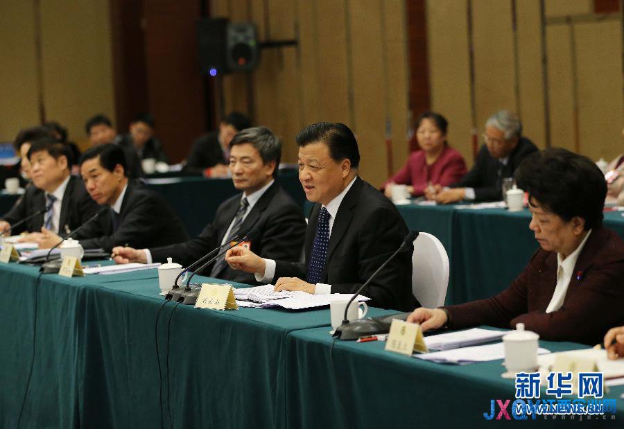 3月4日,中共中央政治局常委、中央書記處書記劉云山看望出席全國(guó)政協(xié)十二屆一次會(huì)議的工會(huì)、共青團(tuán)、青聯(lián)、婦聯(lián)界委員并參加聯(lián)組會(huì)。新華社記者 劉衛(wèi)兵 攝