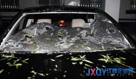 圖為一輛汽車在冰雹襲擊中受損嚴(yán)重。新華社發(fā)(熊茂光攝)