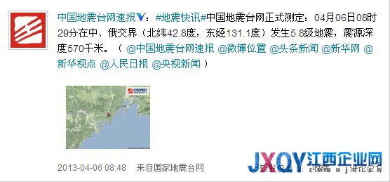 #地震快訊#中國(guó)地震臺(tái)網(wǎng)正式測(cè)定:04月06日08時(shí)29分在中、俄交界(北緯42.8度,東經(jīng)131.1度)發(fā)生5.8級(jí)地震,震源深度570千米。