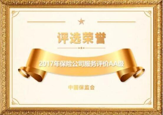 2017保險(xiǎn)公司服務(wù)評(píng)價(jià)AA級(jí)。