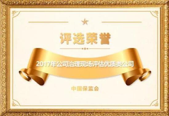 在2017年公司治理現(xiàn)場(chǎng)評(píng)估中,被中國(guó)保監(jiān)會(huì)授予優(yōu)質(zhì)類公司稱號(hào)。