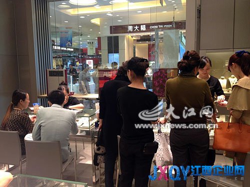 4月17日,南昌市一家金店里,擠滿了前來購(gòu)買金飾的顧客。記者王祺攝