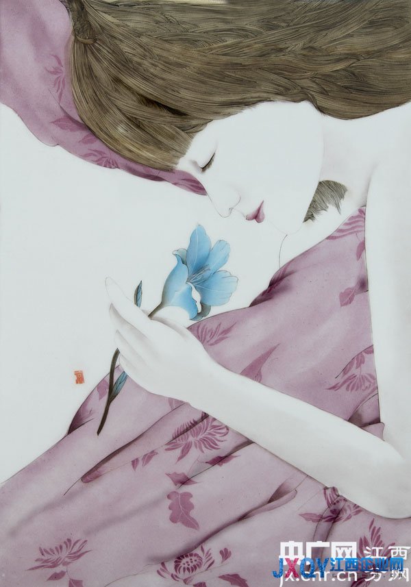 周涼涼2011年來到景德鎮(zhèn),她的工作室名為“瓷眸”,正是她的藝術(shù)風格的體現(xiàn)。慵懶的午后,安靜的女子,閑適淡雅,這些是她的畫中最常出現(xiàn)的意象。