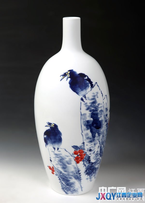 幾年前,他最有代表性的藝術創(chuàng)作還要屬寫意青花,洪南雨用自己獨特的陶瓷藝術語言,形象的表現(xiàn)自己的思想意識和審美感受。從2004年開始,他專攻寫意青花,他筆下的寫意青花花鳥不只是簡單的形式摹寫,而是涵映世界廣大精微于胸的精神抒發(fā)。沒有浮躁,沒有刻意,他憑借寧靜的心襟,去發(fā)現(xiàn)天地間深沉的意境。