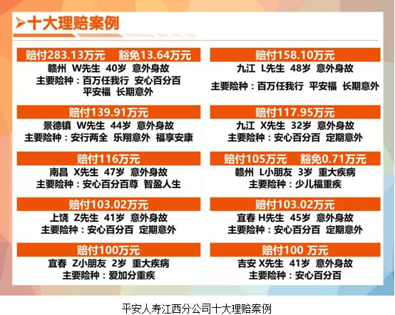 2020年全年, 平安人壽江西分公司總計(jì)理賠2.3萬件,涉及理賠金額2.67億元,平均理賠用時(shí)1.41天,賠付率97.73%,最大理賠金額283.13萬元,共豁免保費(fèi)6356.3萬元。其中“閃賠”案件6603件,占理賠總量的28.57%,理賠金額共計(jì)1134.51萬元,平均用時(shí)11分54秒,最快用時(shí)1分43秒。