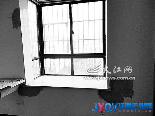 17日,記者來到“贛西明珠”錢小江的新房,在兩個臥室的墻上及屋頂上清楚地看到幾處被補過的印跡,腰墻及衣柜里的大片霉斑也觸目驚心。
